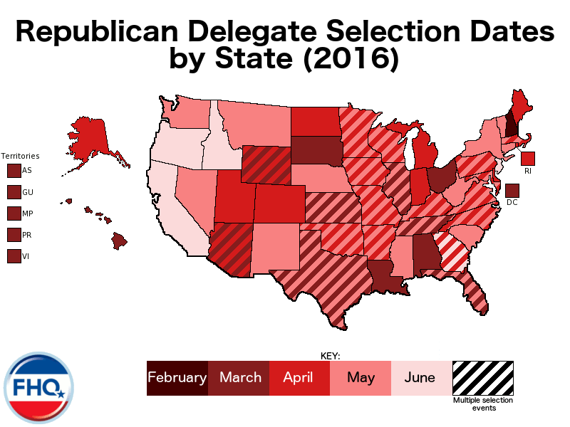 | Northern Marianas | March 15 | caucus | 9 | winner-take-all | n/a | n/a | n/a | 1st | n/a | yes |